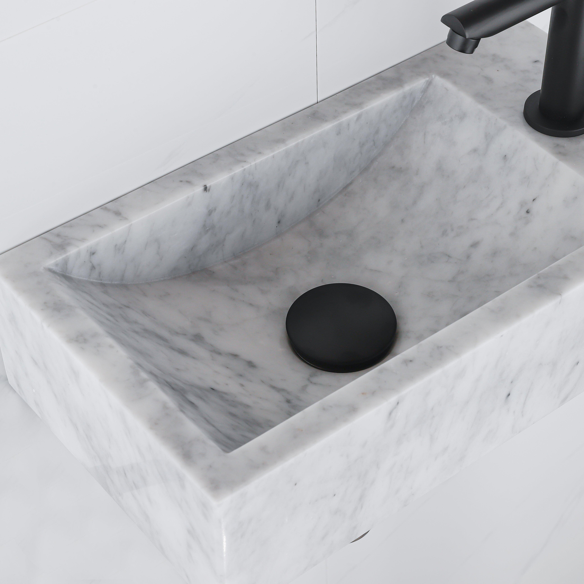 L'ensemble de lavabo Saniclass Fuente se distingue par son apparence élégante. Le matériau en marbre offre un look intemporel et chic, tandis que la combinaison de noir mat et blanc crée un contraste contemporain. Le robinet de lavabo noir mat ajoute une touche d'élégance à l'ensemble, faisant de cet ensemble de lavabo un véritable point focal dans la salle de bains.