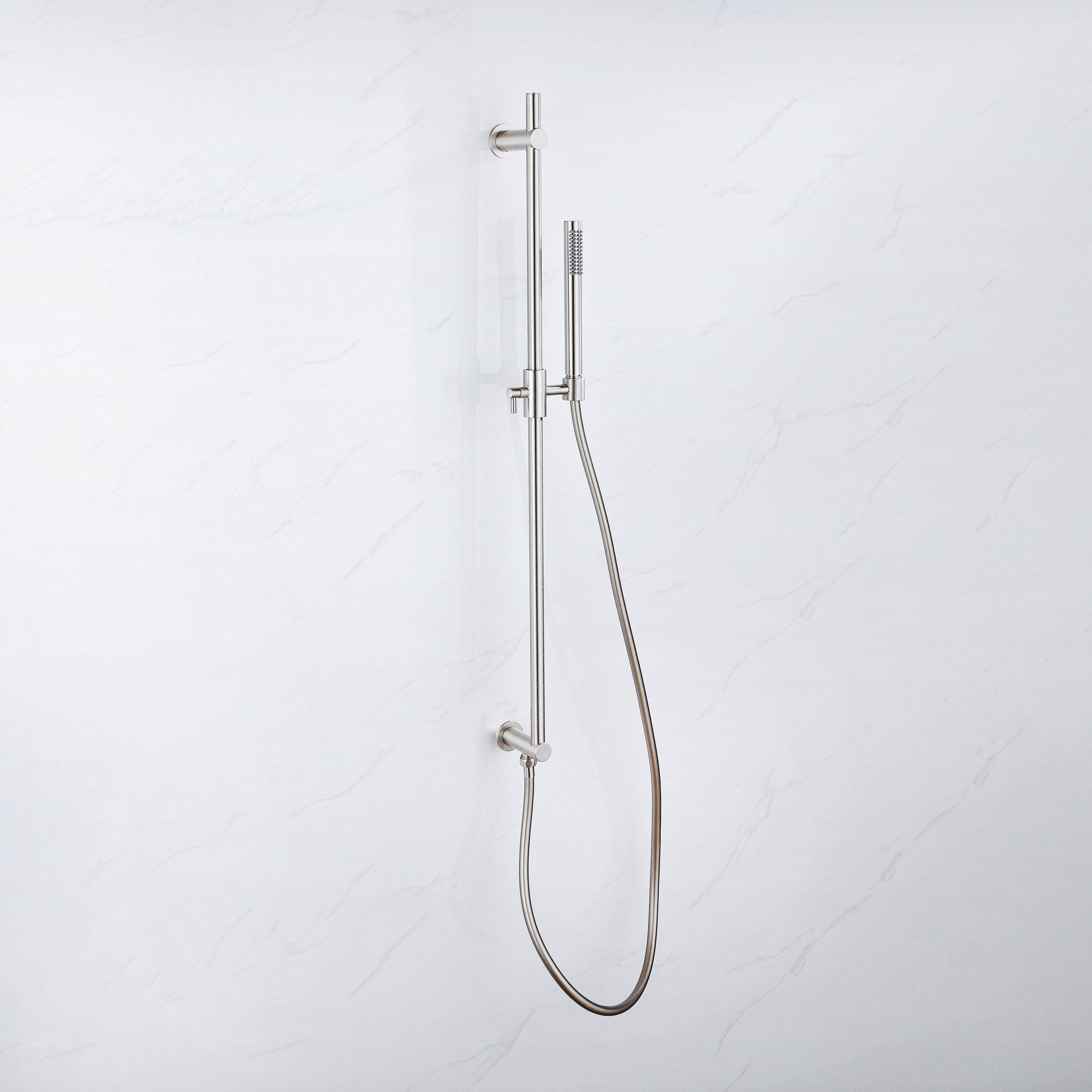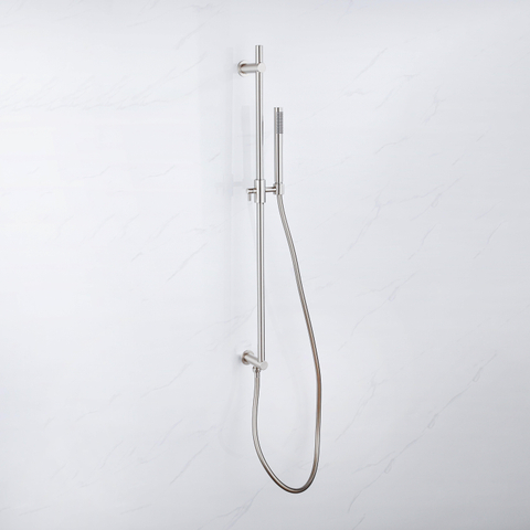 La combinaison d’un corps en laiton avec une finition PVD inox brossé est synonyme de solidité et de longue durée de vie. Le laiton est un matériau robuste, largement utilisé dans les robinetteries de qualité, tandis que le revêtement PVD assure une couche de finition supplémentaire, dure et résistante à l’usure. Cela signifie : une meilleure résistance aux rayures, à la décoloration et aux sollicitations quotidiennes dans un environnement de douche humide. La structure brossée camoufle en outre les traces d’eau et les petites empreintes, ce qui vous oblige à nettoyer moins souvent et permet à la barre de douche de rester belle plus longtemps. Vous ne choisissez donc pas seulement une solution esthétique, mais aussi pratique et facile à entretenir.