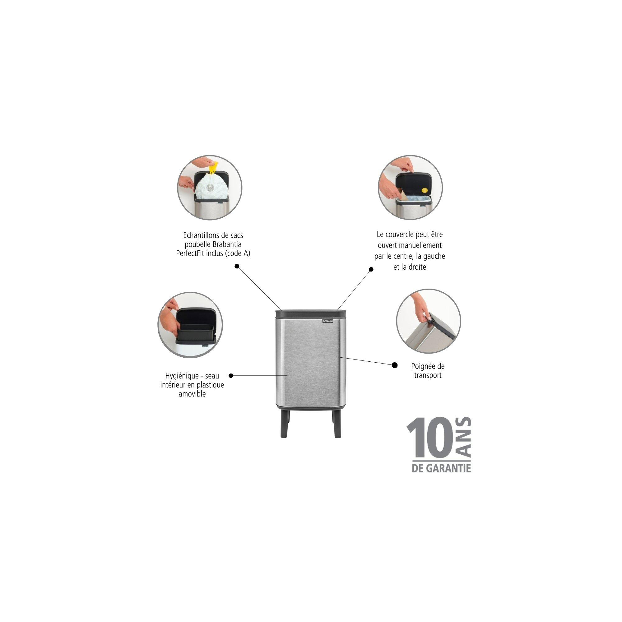Brabantia Bo Hi Poubelle - 4 litres - seau intérieur en plastique - acier mat anti-traces de doigts