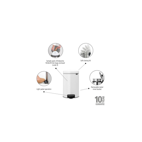 Brabantia NewIcon Poubelle à pédale - 12 litres - seau intérieur métallique - blanc