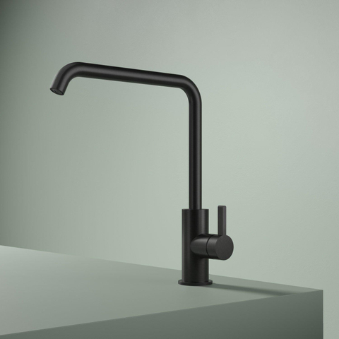Le robinet se distingue immédiatement par sa finition PVD noir mat brossé, raffinée, qui offre une apparence subtile mais affirmée. Son design moderne et élancé lui permet de s’intégrer facilement dans n’importe quelle cuisine, sans s’imposer. Le bec pivotant n’apporte pas seulement de la flexibilité, il renforce également les lignes élégantes de l’ensemble. Vous créez ainsi une cuisine dont vous pouvez être fier et qui invite à cuisiner et à profiter.