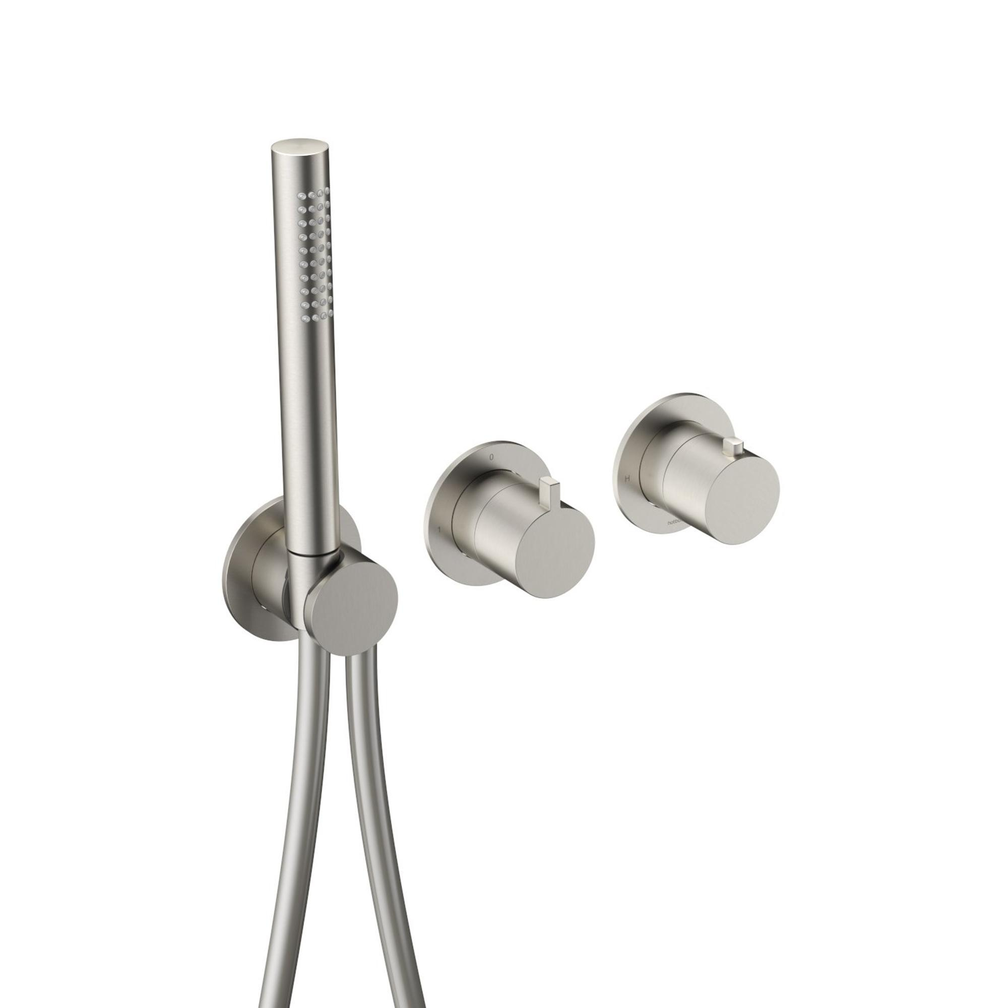 Hotbath Ace Partie apparente - pour mitigeur thermostatique encastré - 2 voies - inverseur - douchette à main - flexible de douche - Nickel brossé