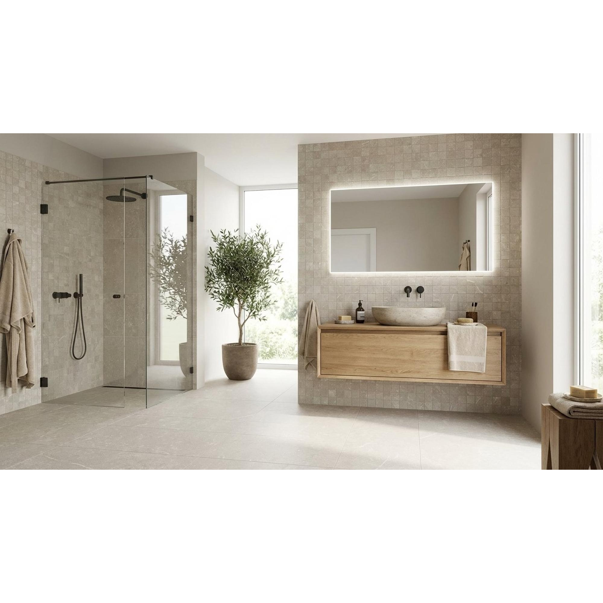 Ce carrelage mural et de sol est incroyablement polyvalent dans son utilisation. Que ce soit pour une salle de bain, une cuisine, un hall ou même un salon, ce carrelage ajoute immédiatement du caractère et du style à chaque espace. L'aspect pierre naturelle et la finition couleur sable le rendent facile à combiner avec différentes palettes de couleurs et styles d'intérieur.