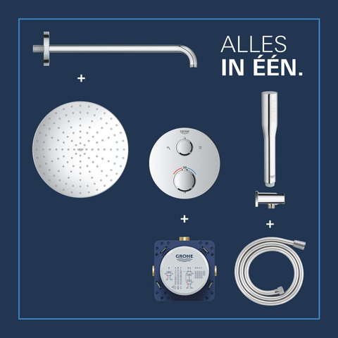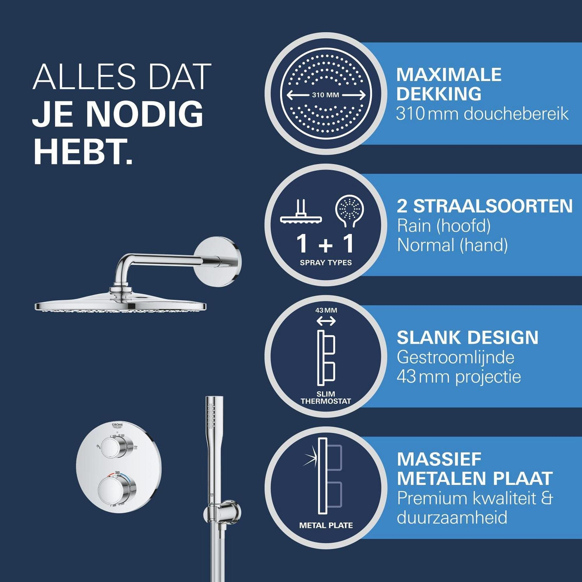 GROHE QuickFix Precision Thermostat Perfect Système de douche encastré - tête de douche Vitalio Rain Mono 310 - chrome.