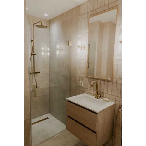 En plus de sa valeur esthétique, la Porte de Douche Fortifura Galeria est également extrêmement fonctionnelle. Les charnières et la poignée sont conçues de manière ergonomique pour une utilisation facile et une durabilité. Le verre de sécurité clair offre une barrière sûre et transparente dans votre douche, tandis que le Laiton Brossé ajoute une touche de chaleur et de raffinement à l'ensemble.