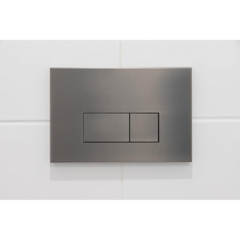 La plaque de commande FugaFlow Eccelente Press dégage une pure élégance avec ses boutons rectangulaires et sa finition en métal gunmetal. Le design minimaliste s'intègre parfaitement dans les salles de bain modernes et ajoute une touche de luxe à l'espace. Le subtil éclat du métal donne une sensation de raffinement et crée un ensemble harmonieux avec d'autres accessoires de salle de bain. Avec cette plaque de commande, vous améliorez sans effort l'apparence de vos toilettes ou de votre salle de bain.