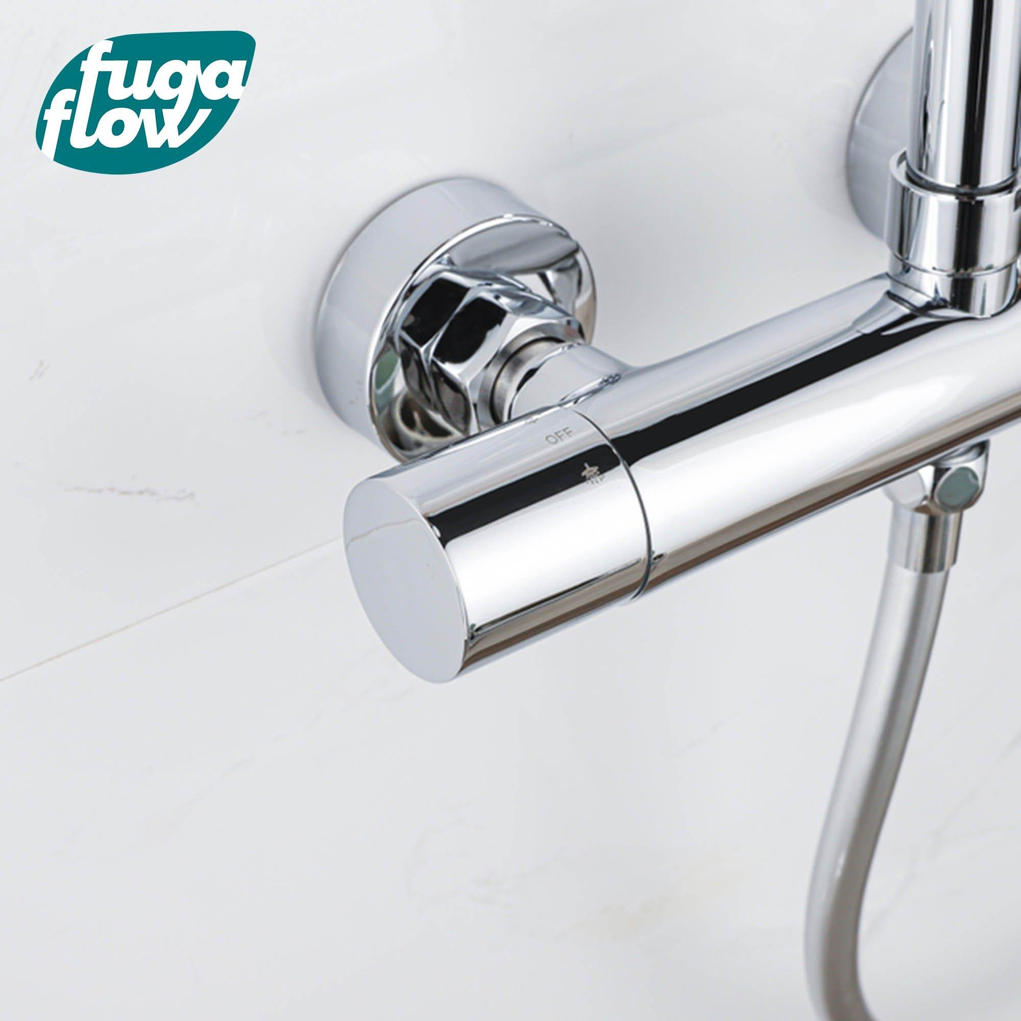 FugaFlow Efficiente Sobrado ensemble de douche à effet pluie avec thermostat douche de tête 30cm douchette à main 3 positions chrome 110cm