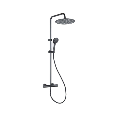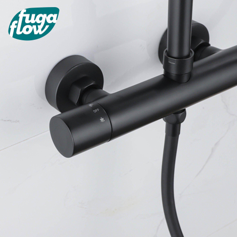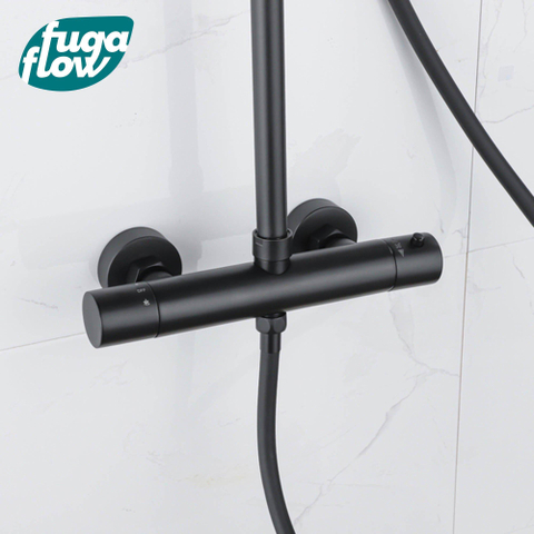 FugaFlow Efficiente Sobrado ensemble de douche à effet pluie avec thermostat douche de tête 30cm douchette à main 3 positions noir 110cm