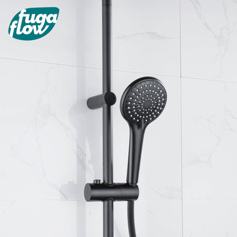 FugaFlow Efficiente Sobrado ensemble de douche pluie avec mitigeur douche principale 30cm douchette 3 positions noir 110cm