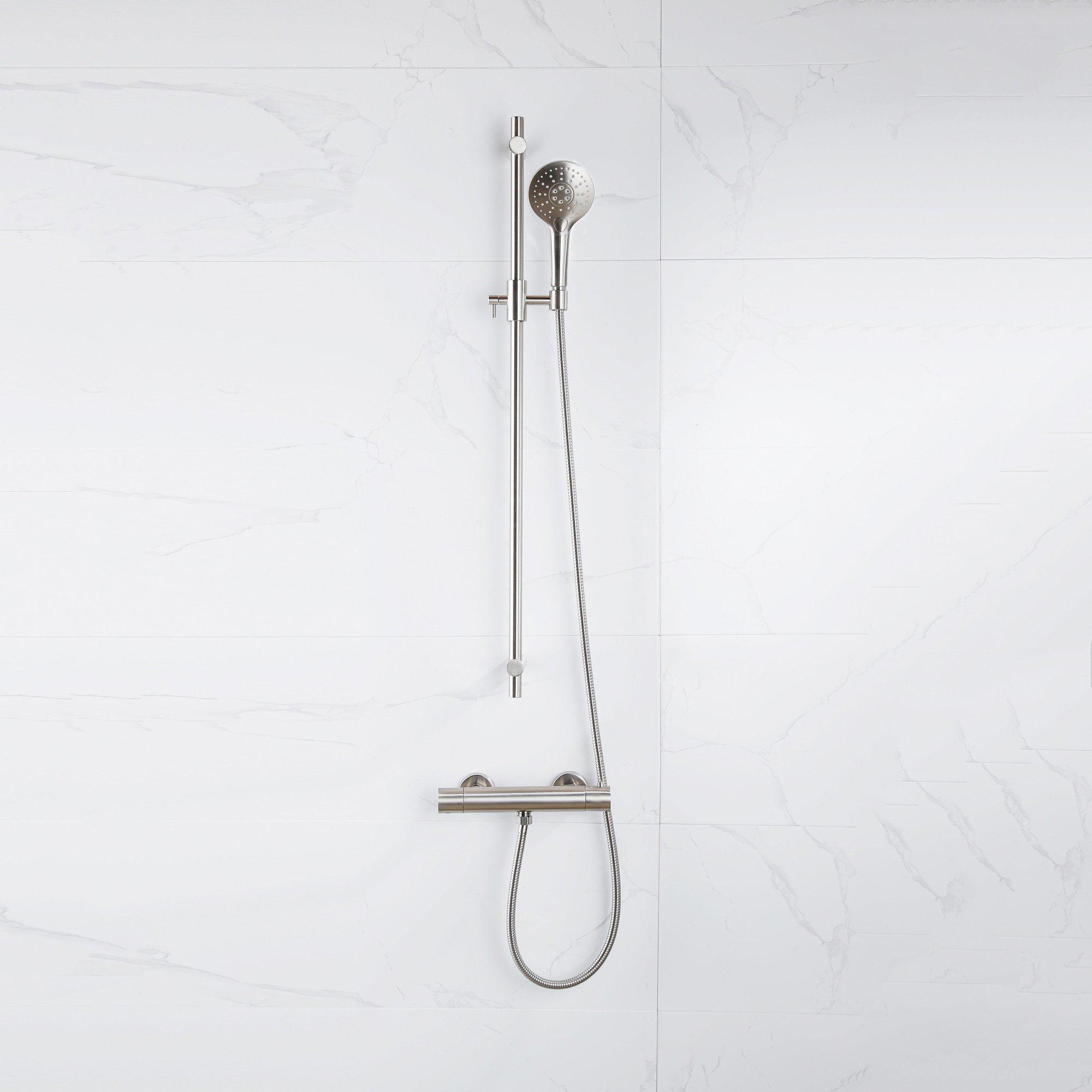 FugaFlow Eccelente Sobrado Ensemble de douche barre curseur avec douchette ronde, flexible en métal et robinet de douche Inox brossé PVD