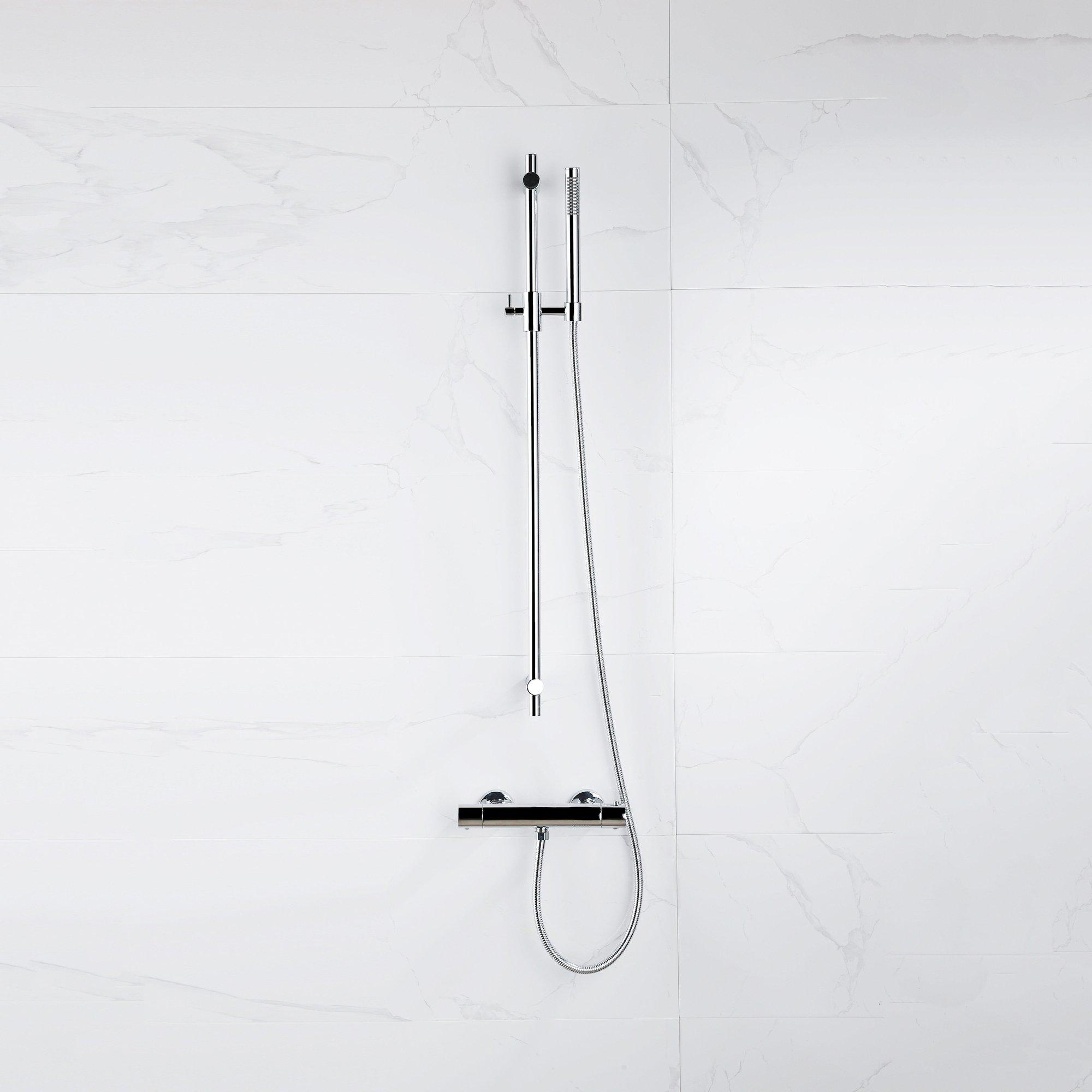 FugaFlow Eccelente Sobrado Ensemble de douche barre curseur avec douchette stick, flexible en métal et robinet de douche Chrome