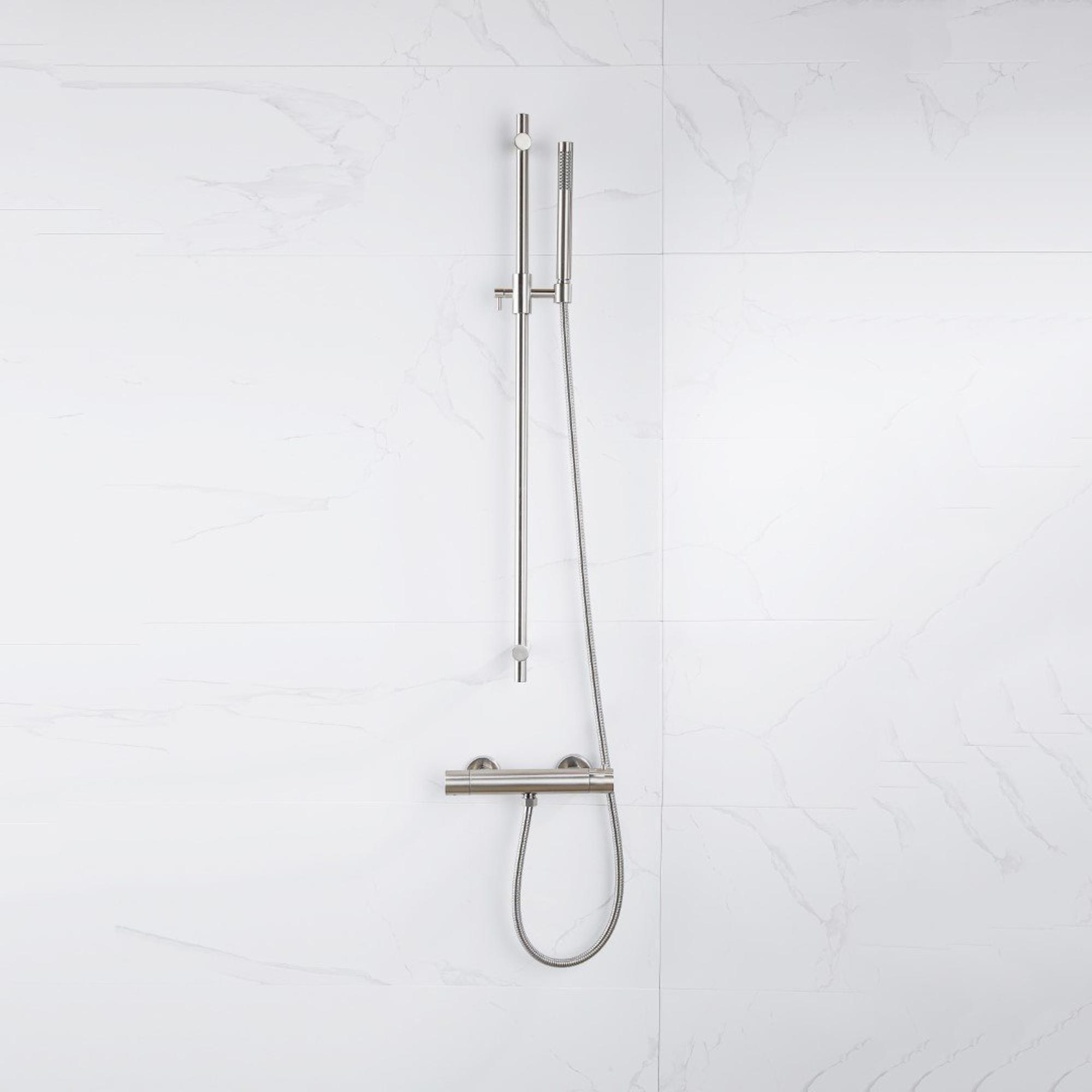 Ce robinet de douche est conçu avec une touche moderne, ce qui le rend parfait pour les salles de bain contemporaines. Le design épuré et la finition en acier inoxydable brossé donnent une apparence minimaliste et chic. Avec l'ensemble de glissière et la douchette à main fournies, vous pouvez facilement ajuster la hauteur et la direction du jet d'eau pour un confort optimal pendant la douche.