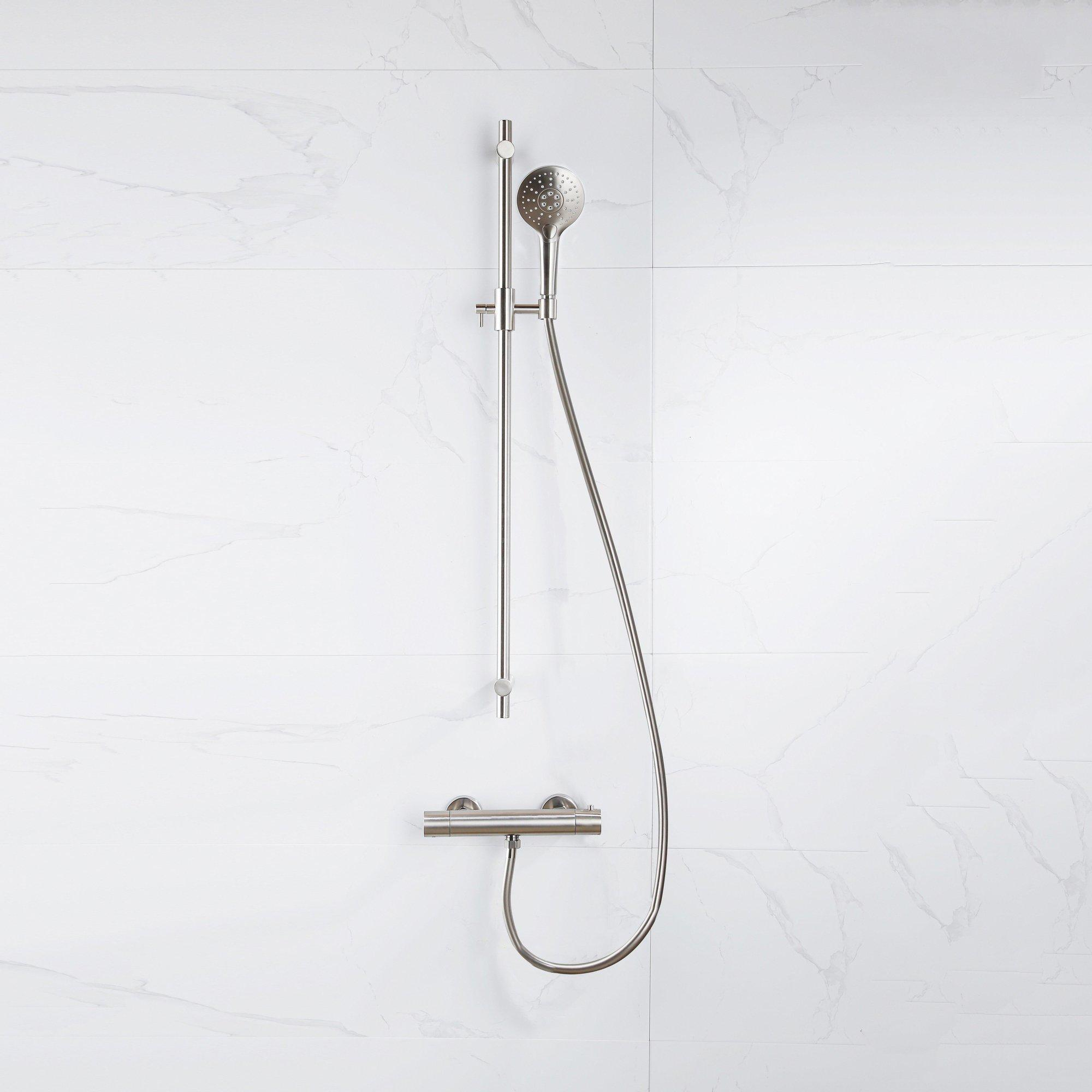 FugaFlow Eccelente Sobrado Mitigeur de douche - avec barre de curseur - douchette ronde - flexible lisse - Inox brossé PVD