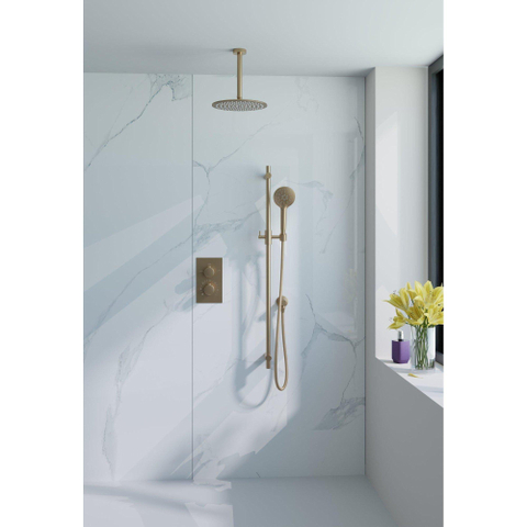 FugaFlow Eccelente Sobrado Douche à l'italienne encastrée - thermostatique - bras plafond - glijstang - douche principale de 25cm - douchette ronde - laiton brossé PVD