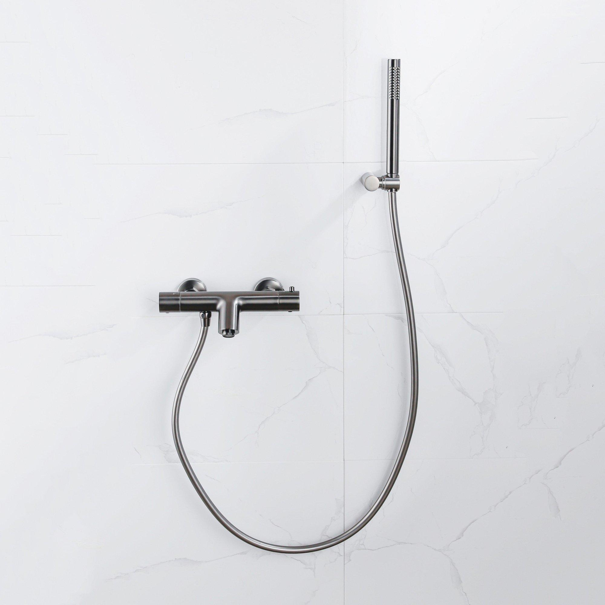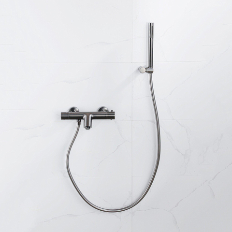 FugaFlow Eccelente Sobrado Robinet de baignoire thermostatique avec douchette stick, support et flexible lisse Gunmetal PVD