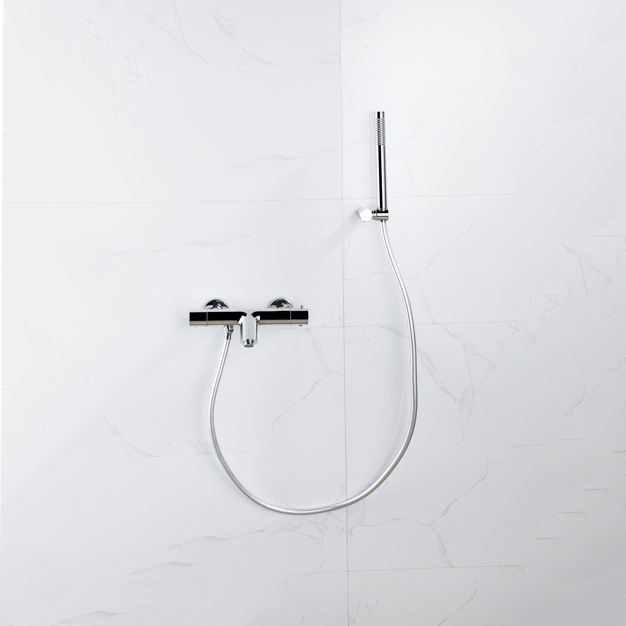 FugaFlow Eccelente Sobrado Robinet de baignoire thermostatique avec douchette stick, support et flexible lisse Chrome