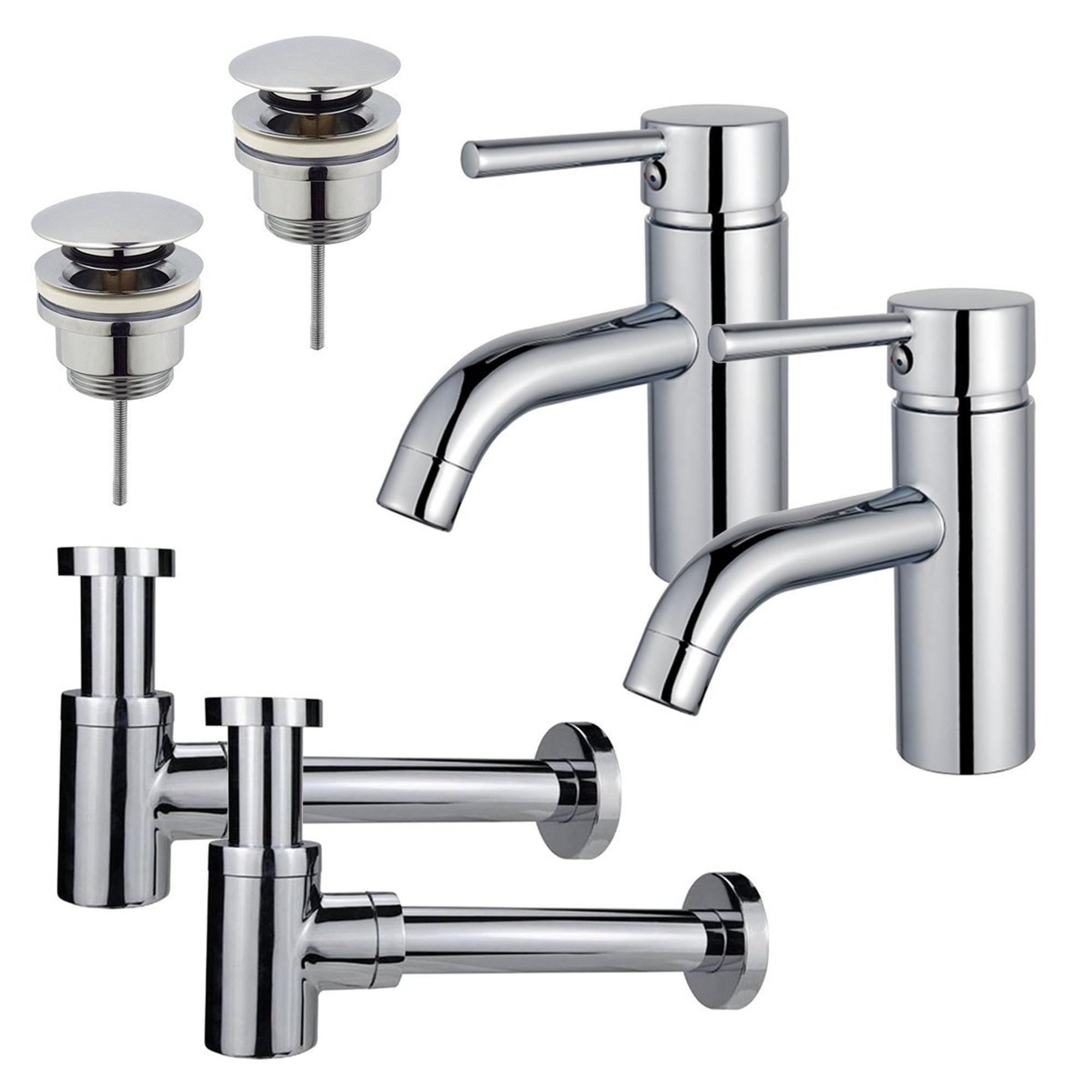 FugaFlow Eccelente Sobrado Kit robinet lavabo - pour double vasque - robinet bas - bonde clic clac - siphon design bas - Chrome brillant