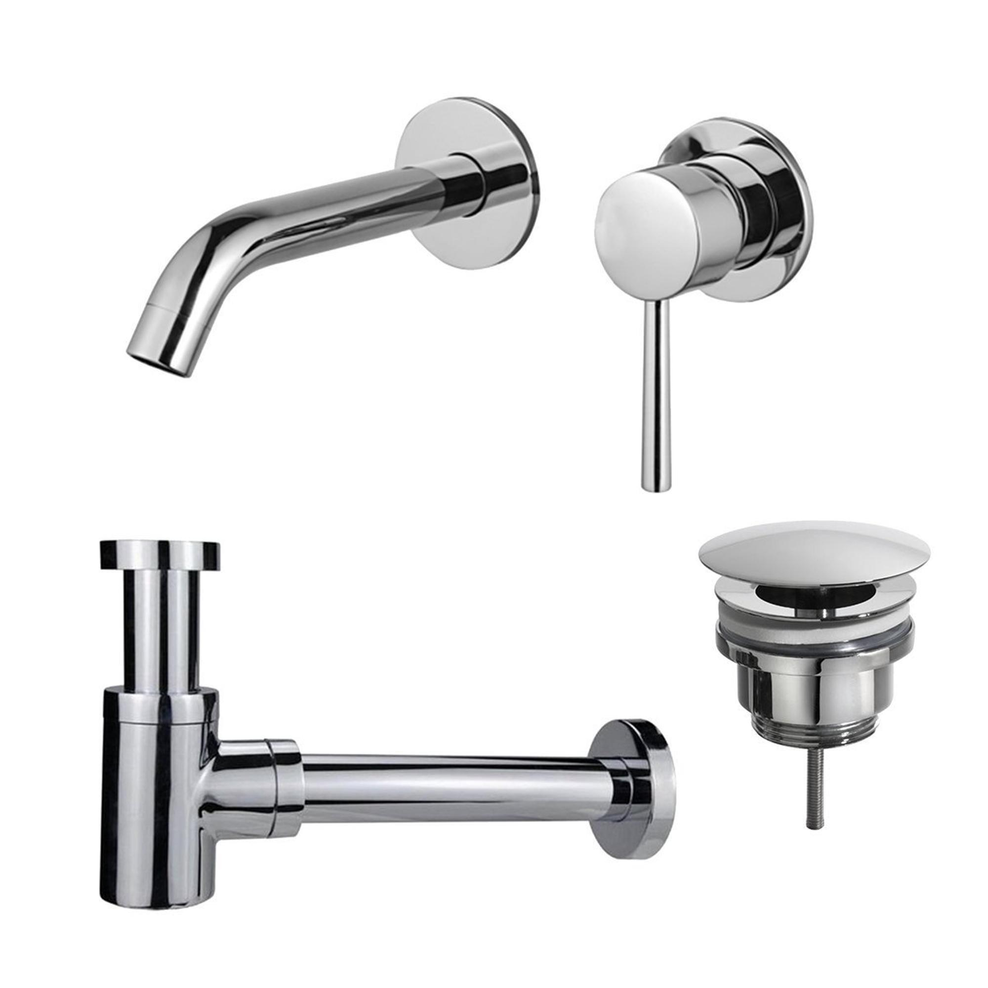 FugaFlow Eccelente Sobrado Slim Slim Kit mitigeur lavabo - robinet encastrable - bonde non-obturable - siphon design bas - Chrome brillant