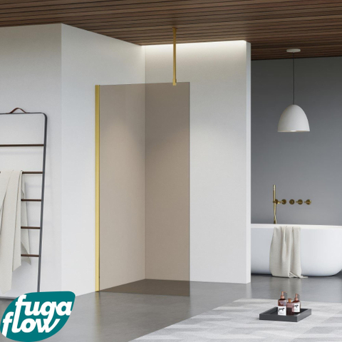 FugaFlow Eccelente Vetro Douche à l'italienne - 30x200cm - Fumé - Bras plafond - Laiton Brossé (Doré)