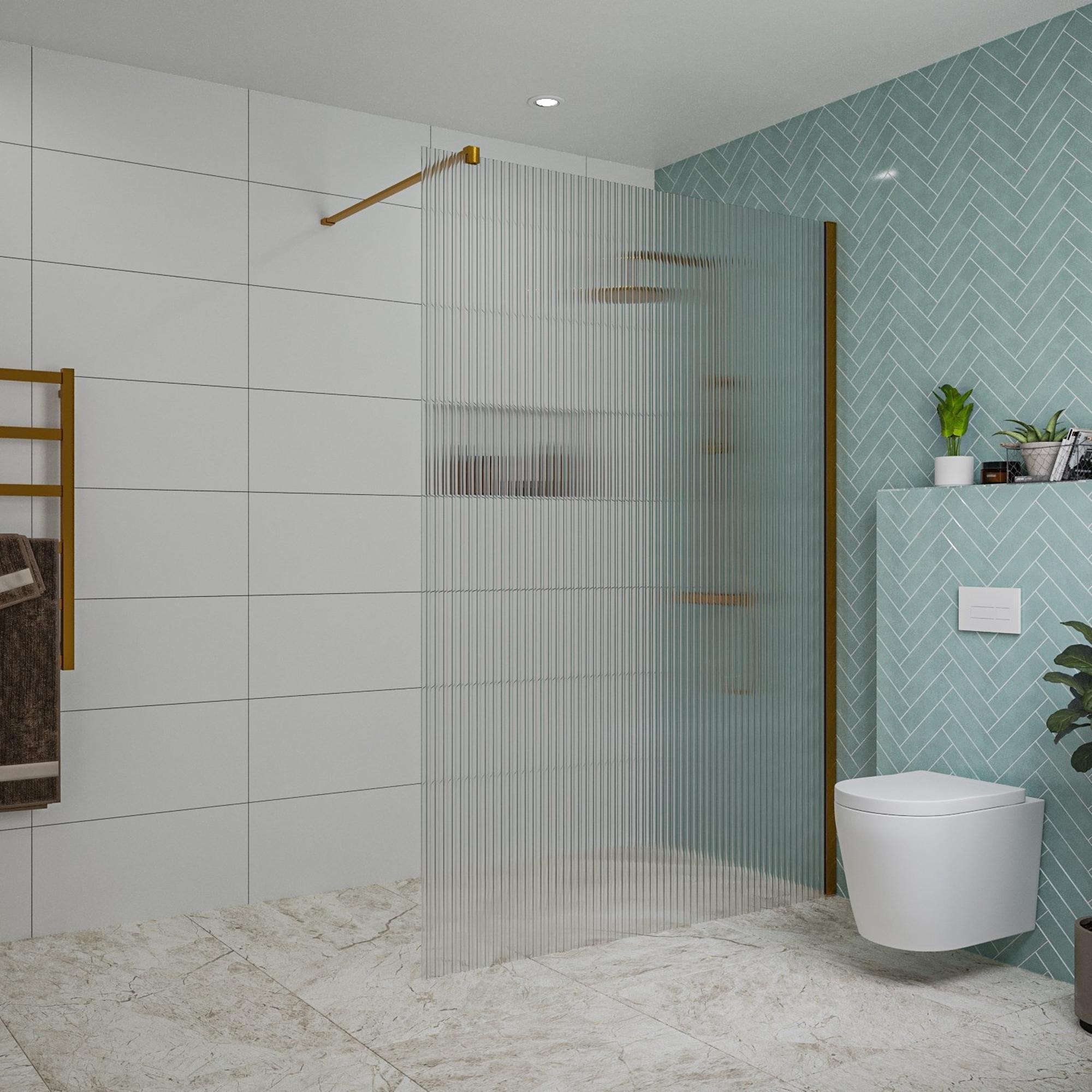 FugaFlow Eccelente Vetro Douche à l'italienne - 140x200cm - verre nervuré - Cuivre brossé