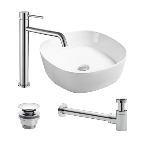 FugaFlow Eccelente Arredo kit lavabo avec lavabo en porcelaine ensemble de robinet et bonde de vidage en chrome