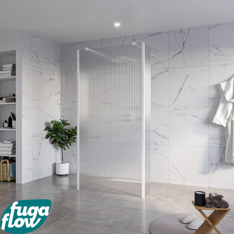 FugaFlow Eccelente Vetro Douche à l'italienne Libre - 100x200cm - Verre clair strié - anti-calcaire - verre de sécurité 8mm - 2 parois latérales 30cm - avec bras muraux et profils d'angle - Blanc mat