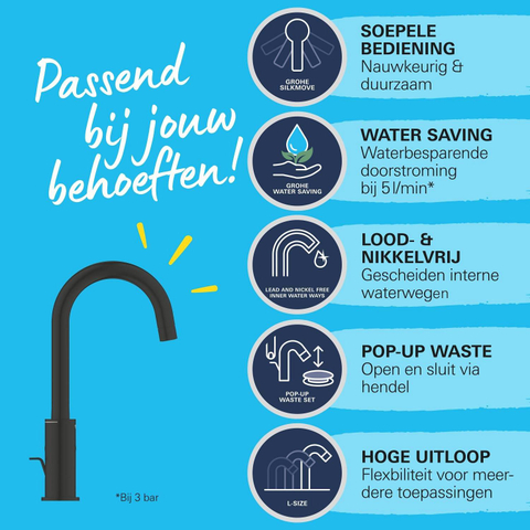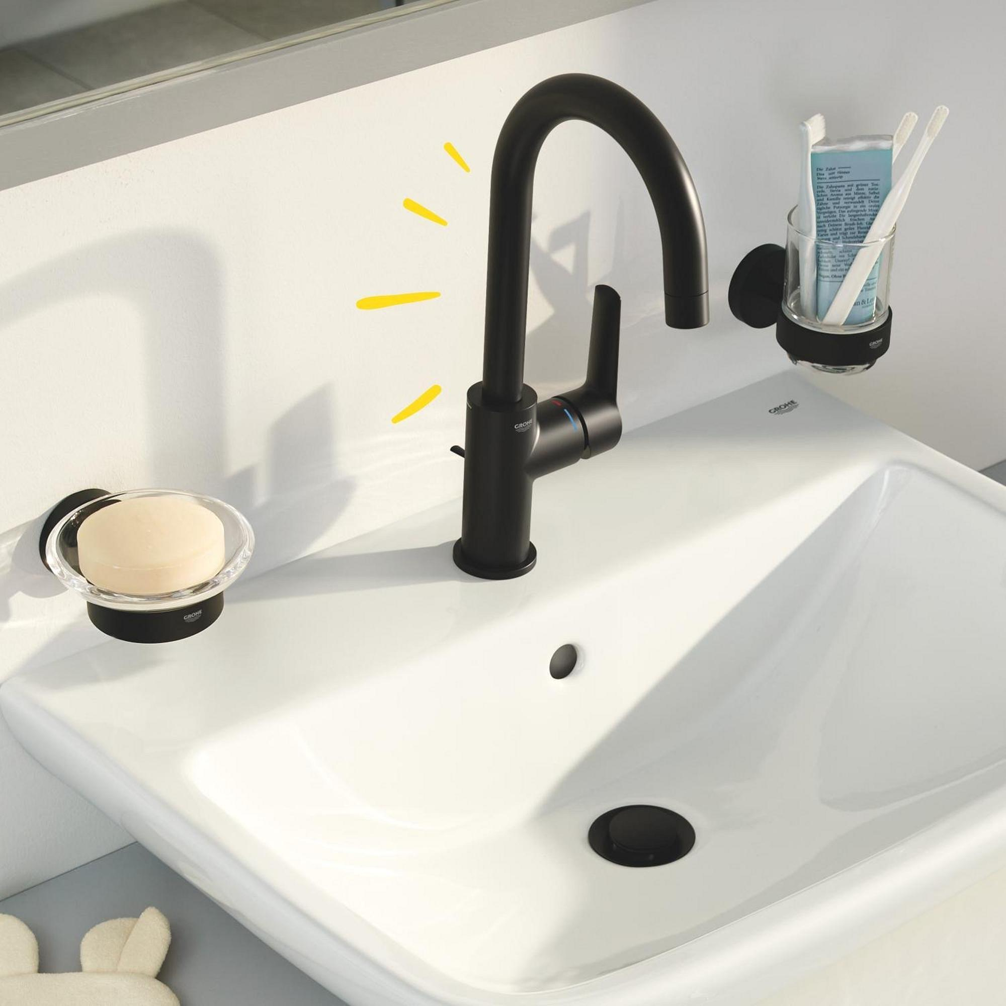 Confort optimal, technologie respectueuse de l'environnement et installation facile - le mélangeur de lavabo GROHE Start en Noir Mat avec bec haut pivotant est un design intelligent et élégant à un excellent prix