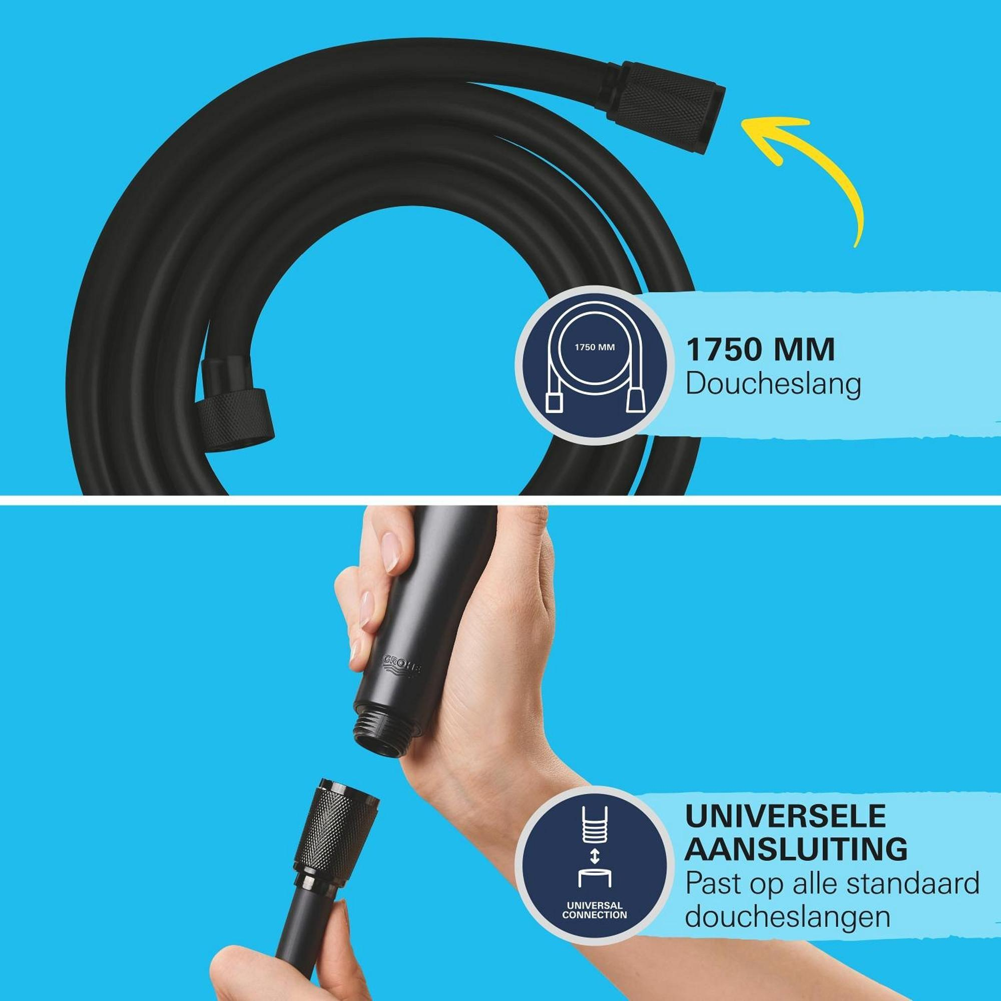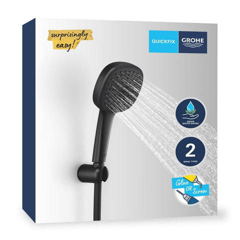 Grohe Vitalio Comfort QuickFix Support pommeau de douche - Ø11cm - 2 jets - 7.4l/min - flexible 175cm - noir mat