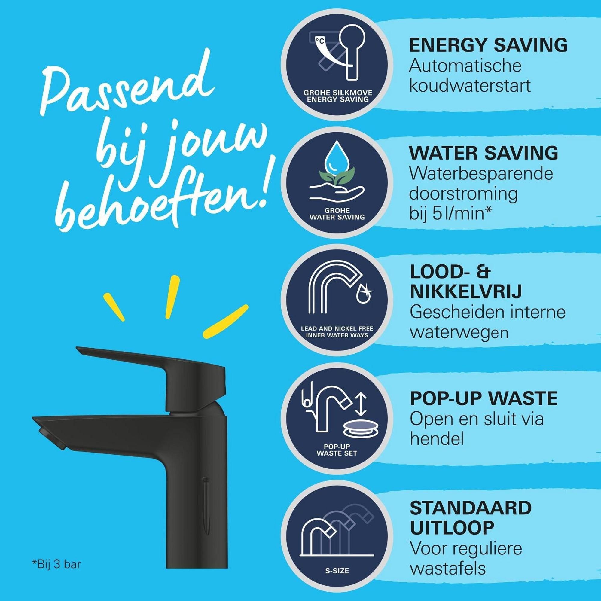 Une mise à jour rapide à monter, abordable avec des fonctionnalités écologiques et un look attrayant - le ensemble de robinet GROHE Start Noir Mat est un véritable point de mire