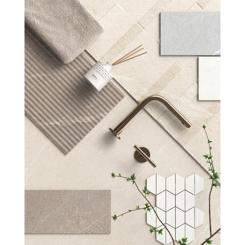 La douce couleur sable, associée à l’aspect pierre naturelle, confère immédiatement à votre espace une atmosphère chaleureuse et accueillante. Comme la couleur est neutre, vous pouvez l’utiliser dans de nombreux styles : d’une salle de bains style hôtel chic avec des accents foncés à un style scandinave avec des tons de bois clairs. Le grand format rectangulaire de 59,5x119,2 cm crée un effet de volume, surtout lorsque vous posez le carrelage dans le sens de la longueur. Les bords rectifiés permettent des joints étroits et réguliers, ce qui rend la surface visuellement encore plus paisible. Vous créez ainsi une base intemporelle qui ne se démode pas rapidement et se combine facilement avec différents meubles, robinets et accessoires.
