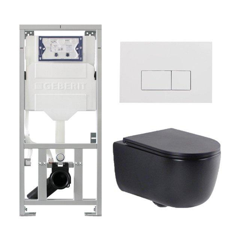 QeramiQ Dely Swirl Ensemble WC- 36.3x51.7cm - Réservoir encastré Geberit UP320 - abattant fin - Plaque de commande blanche brillante - Boutons rectangulaires - Noir mat