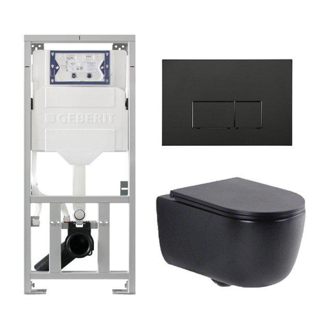 QeramiQ Dely Swirl Ensemble WC - 36.3x51.7cm - Réservoir encastré Geberit UP320 - abattant fin - Plaque de commande en métal noir mat - Boutons rectangulaires - Noir mat