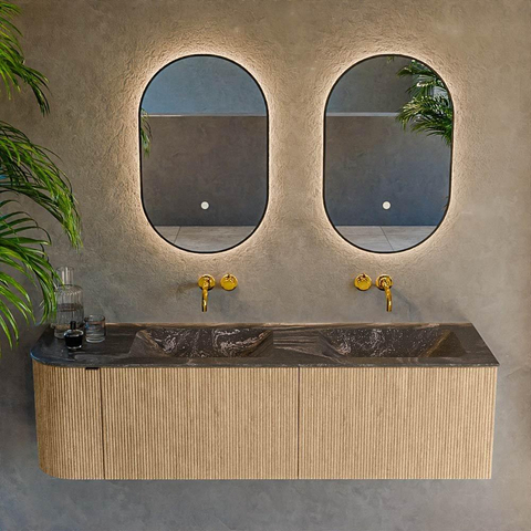 Le lavabo double intégré de couleur Lava donne à votre salle de bains une apparence moderne et luxueuse et offre un grand confort d’utilisation. Avec deux vasques côte à côte, vous évitez les embouteillages au lavabo pendant les heures de pointe du matin et du soir. Le lavabo sans trous de robinet vous offre la liberté de choisir vous-même de beaux mitigeurs à poser et des robinets encastrés assortis, afin que vous puissiez adapter le style de votre salle de bains jusque dans les moindres détails. La vasque de couleur anthracite forme un contraste élégant avec la teinte bois chaleureuse, ce qui donne à l’ensemble un look de salle de bains d’hôtel haut de gamme, sans paraître trop strict ou froid.