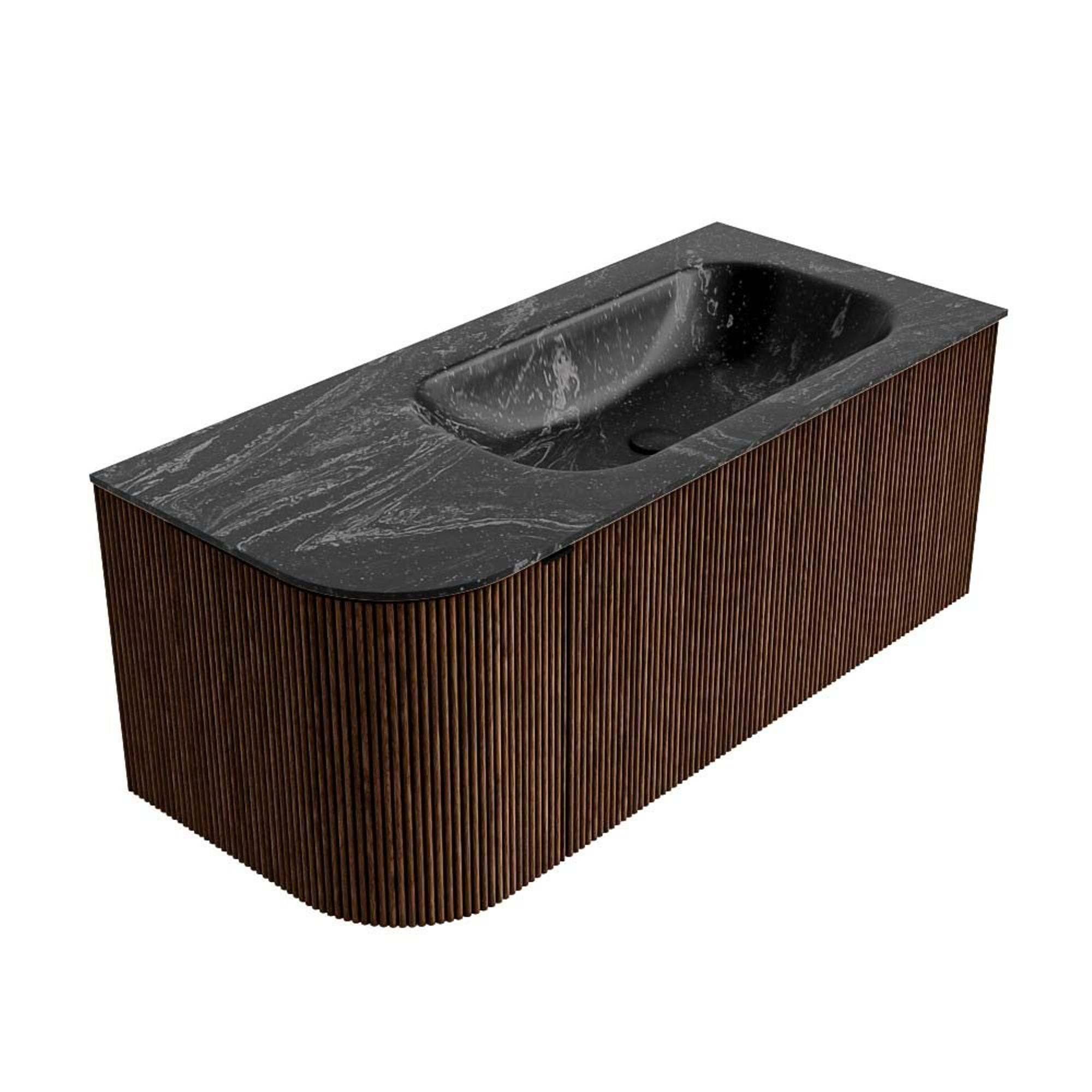 MONDIAZ KURVE-DLUX Meuble de salle de bains 105cm avec module 25 L couleur Walnut avec 1 tiroir et 1 porte. Lavabo BIG SMALL à droite sans trou de robinet couleur Lava.