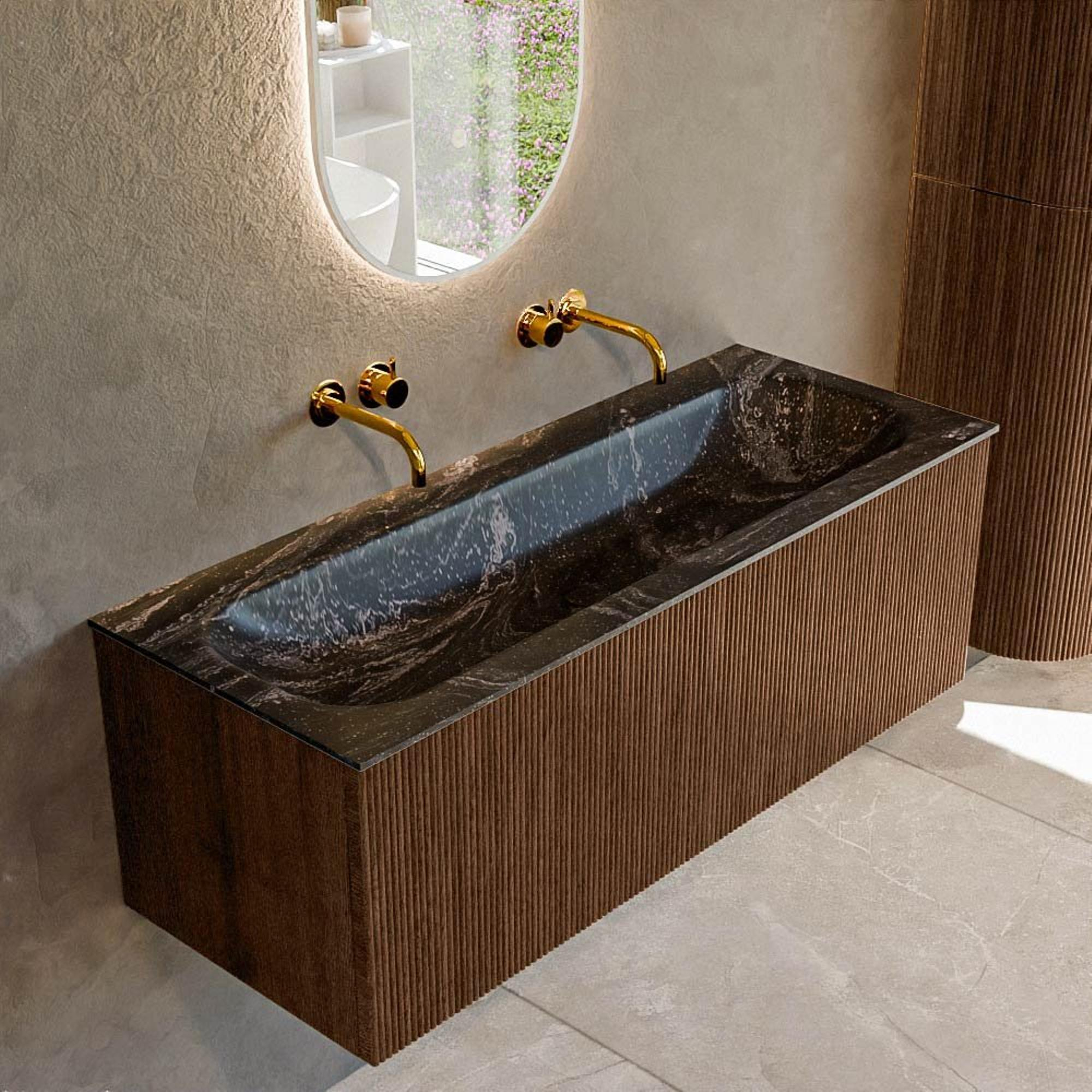 MONDIAZ KURVE-DLUX Meuble de salle de bains 120 cm couleur Walnut avec 1 tiroir. Lavabo BIG LARGE central sans trou de robinet couleur Lava.