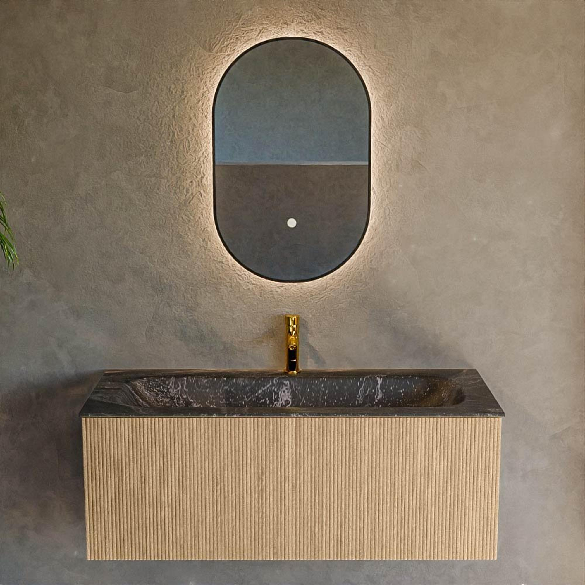 La couleur Oak chaleureuse du meuble crée une atmosphère naturelle et conviviale dans la salle de bains, tandis que le lavabo couleur lave apporte une touche moderne et marquée. Ce contraste fait de l'ensemble un véritable accroche-regard et donne à votre salle de bains une apparence haut de gamme. La forme rectangulaire et les lignes épurées s'accordent parfaitement avec les intérieurs minimalistes, mais peuvent également être très bien combinées avec des teintes douces et des matériaux naturels, comme des carreaux aspect béton ou des robinets noirs mats, grâce à la structure du bois. Vous créez ainsi facilement un agencement de salle de bains cohérent où tout est harmonieux, de la couleur à la forme.