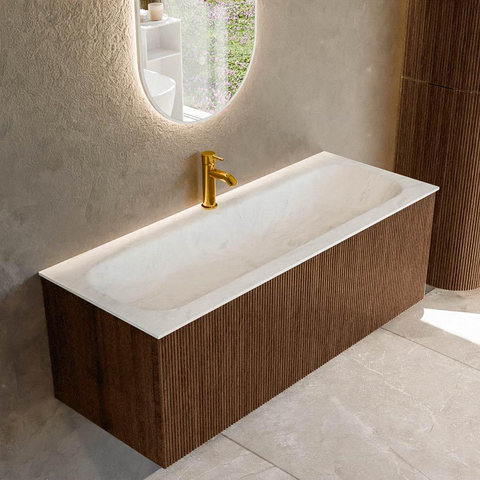 MONDIAZ KURVE-DLUX 120cm Meuble salle de bain - couleur Walnut - 1 tiroir - vasque BIG LARGE centre - 1 trou de robinet - couleur Opalo