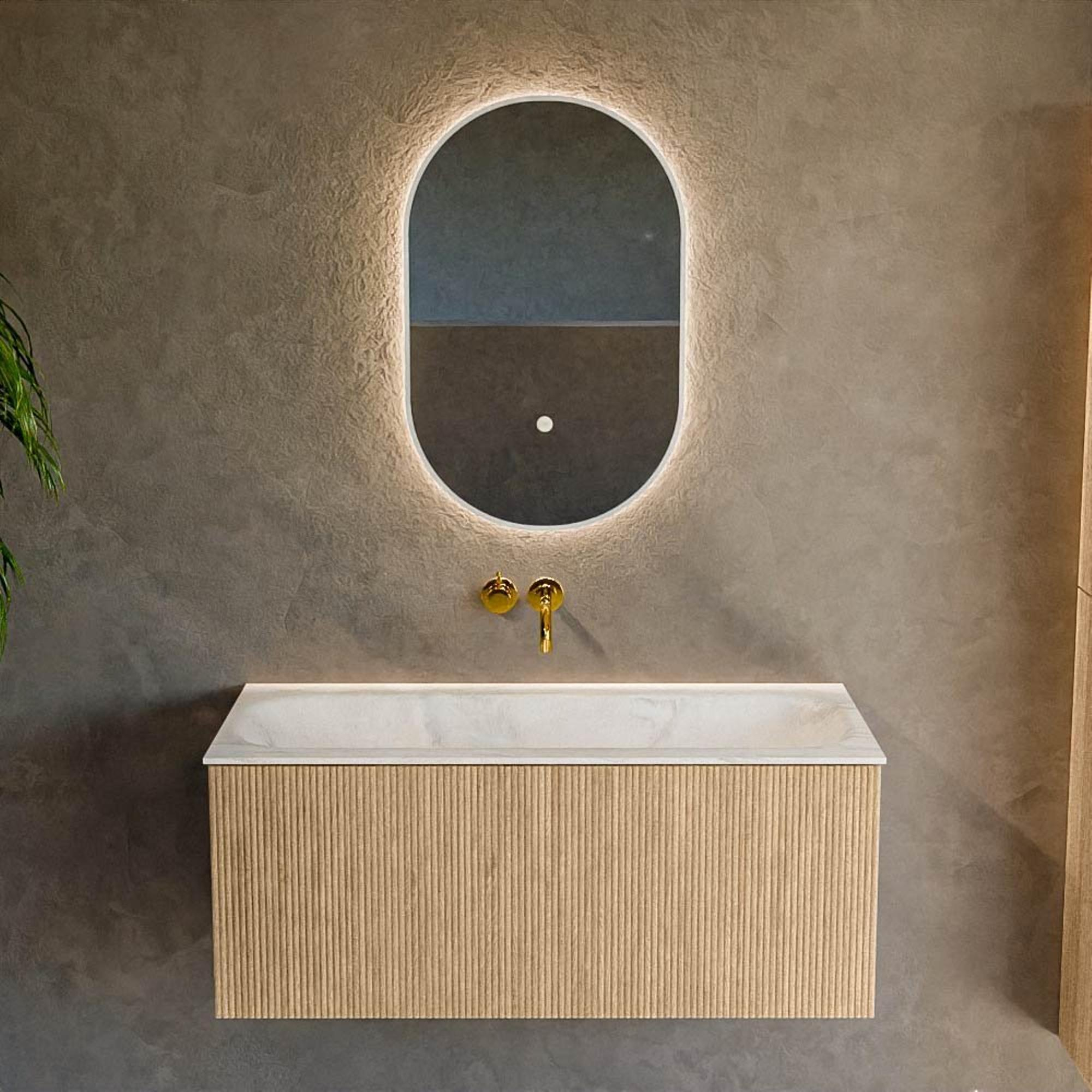 La forme rectangulaire, les lignes épurées et la couleur Oak donnent immédiatement à votre salle de bains une base chaleureuse et naturelle. En combinaison avec le plan de vasque crème en Ostra, vous créez une ambiance d’hôtel de luxe, sans que cela ne paraisse froid ou impersonnel. La poignée intégrée dans le tiroir maintient la façade visuellement calme et minimaliste, ce qui s’accorde parfaitement avec un aménagement de salle de bains moderne ou scandinave. Comme le lavabo est placé au centre du plan, l’ensemble paraît symétrique et équilibré. Il en résulte un meuble qui n’est pas seulement beau sur la photo, mais qui apporte jour après jour calme et harmonie dans votre salle de bains.