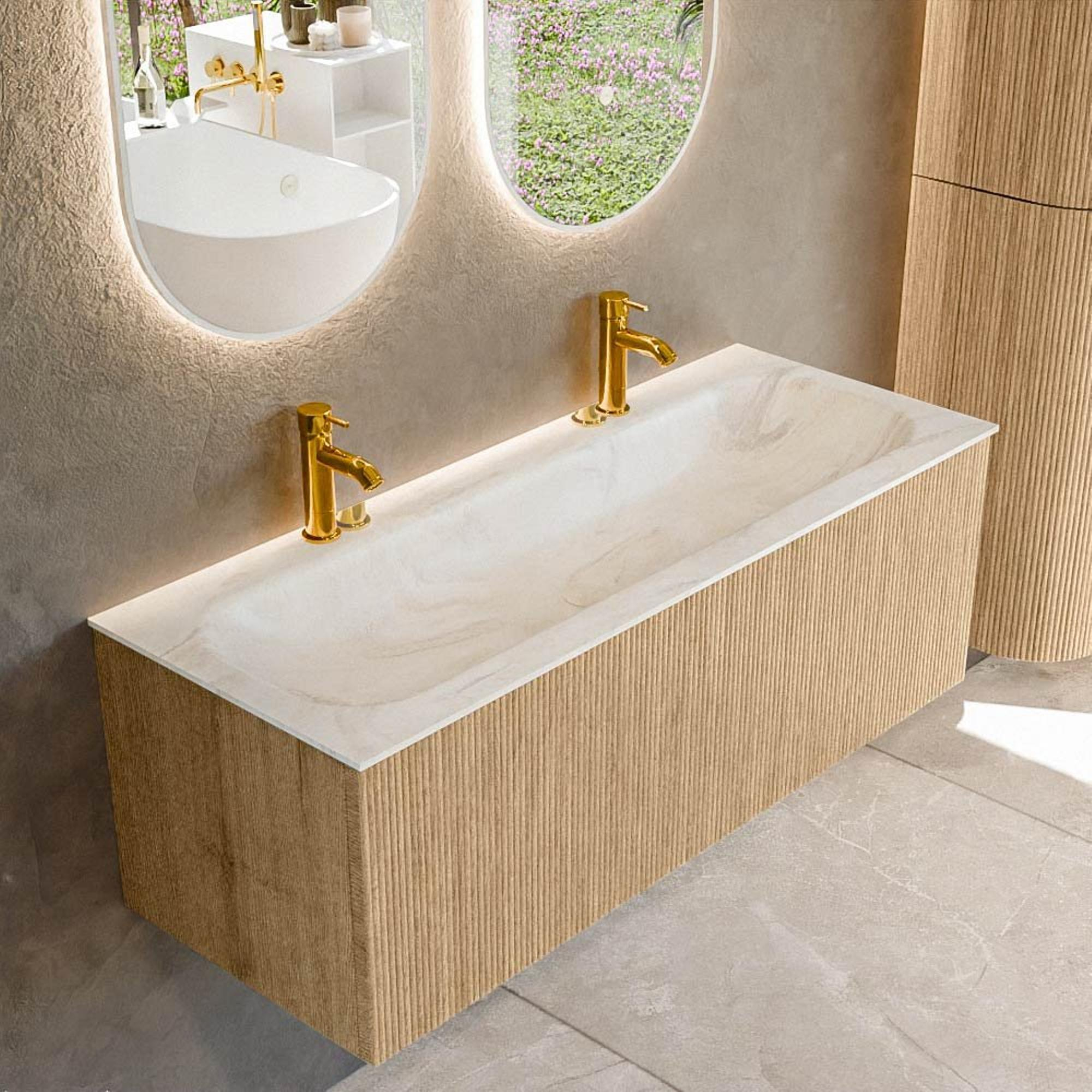 MONDIAZ KURVE-DLUX 120cm Meuble salle de bain - couleur Oak - 1 tiroir - vasque BIG LARGE centre - 2 trous de robinet - couleur Ostra