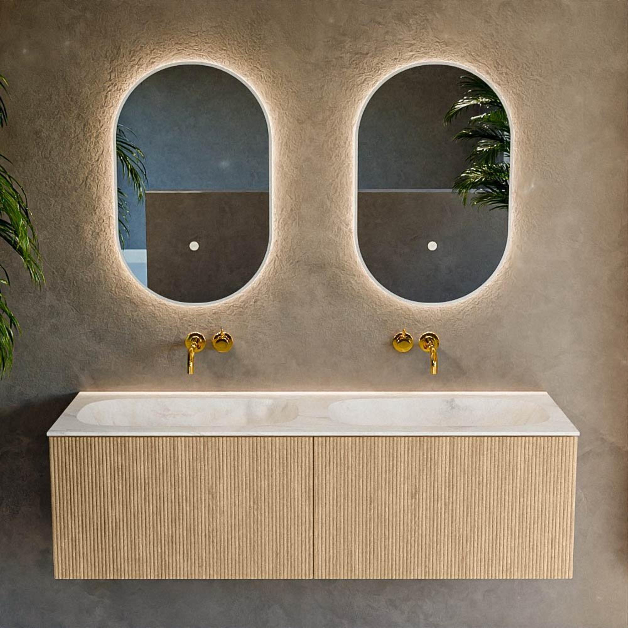Avec une largeur de 140 cm et un double lavabo, vous disposez de tout l’espace nécessaire pour que les moments chargés de la journée se déroulent en douceur. Les deux lavabos séparés vous permettent de ne pas vous gêner mutuellement lors du brossage des dents, du rasage ou du maquillage. Comme le lavabo ne possède pas de trous de robinet, vous pouvez le combiner avec de beaux mitigeurs sur gorge ou mitigeurs muraux et ainsi créer un look luxueux et minimaliste. Le lavabo en solid surface de couleur crème Ostra s’accorde parfaitement avec les teintes douces et naturelles du reste de votre salle de bains et offre en outre une sensation de confort et de qualité. Vous créez ainsi non seulement une fonctionnalité supplémentaire, mais aussi un lieu apaisant dont vous profitez chaque jour avec plaisir.