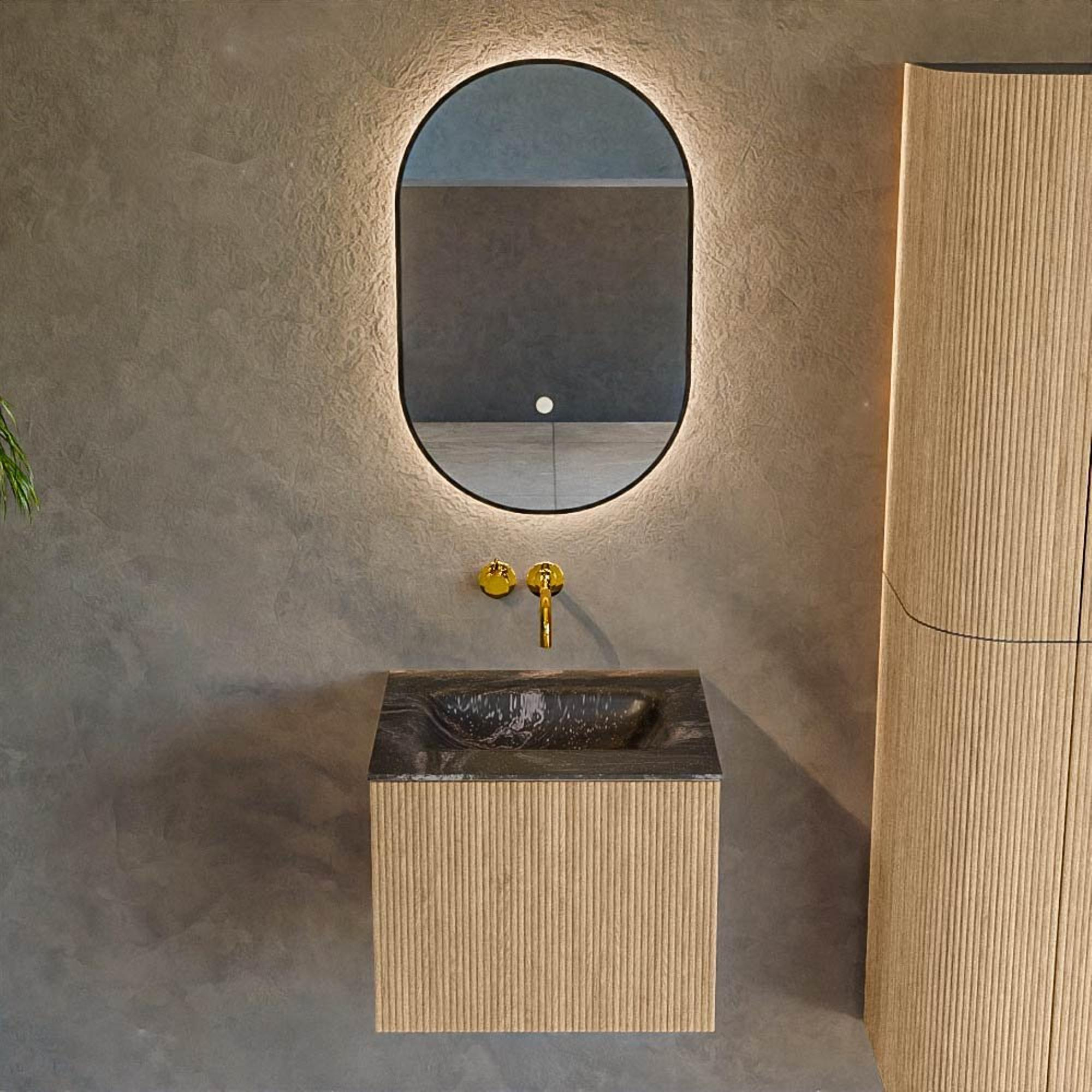 MONDIAZ KURVE-DLUX 50cm Meuble salle de bain - couleur Oak - 1 tiroir - vasque GRUNNE centre - sans trou de robinet - couleur Lava