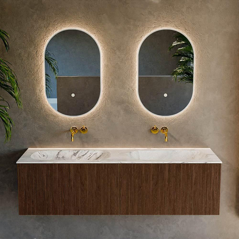 - Largeur généreuse de 150 cm avec double lavabo, idéale pour une utilisation à deux lors des routines du matin et du soir.