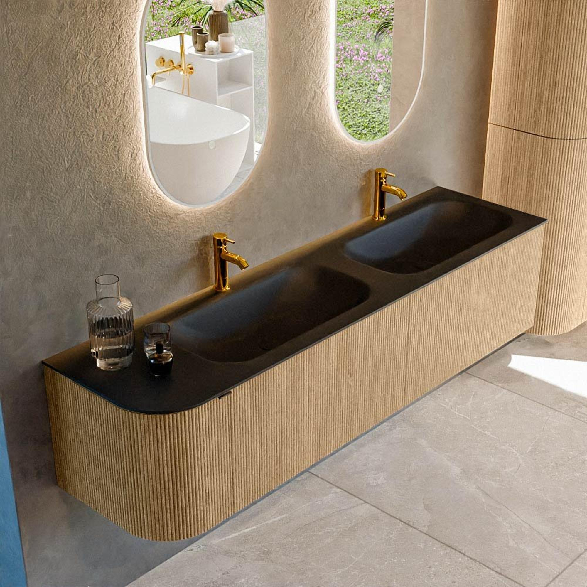 MONDIAZ KURVE 175cm Meuble salle de bain avec module 25 G - couleur Oak - 2 tiroirs - 1 porte - vasque BIG SMALL double / droite - 2 trous de robinet - Urban