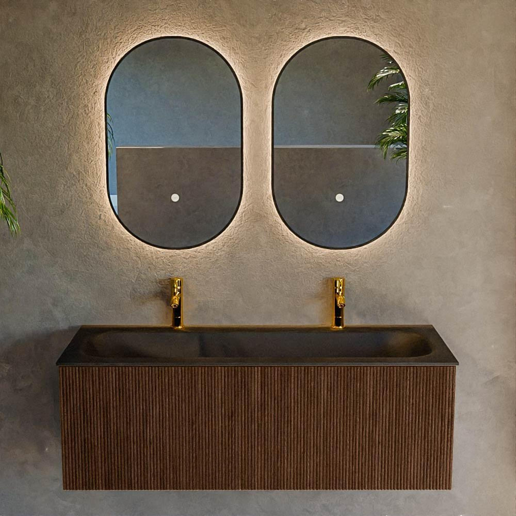 Avec une largeur de 120 cm et un lavabo BIG LARGE au centre, vous disposez de tout l'espace nécessaire pour que le coup de feu du matin dans la salle de bains se déroule sans encombre. Les deux trous de robinet vous offrent la possibilité d'installer deux robinets, idéal si vous utilisez souvent le lavabo à deux en même temps ou si vous souhaitez simplement plus de flexibilité dans le choix de vos robinets. Le grand bassin unique facilite le nettoyage par rapport à deux vasques séparées et offre suffisamment de place pour vous laver le visage, poser des objets ou aider une petite main d'enfant sans que cela ne paraisse plein ou désordonné. Vous combinez ainsi le luxe d'une large configuration double avec les avantages pratiques d'un grand lavabo unique et bien agencé.