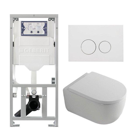 QeramiQ Dely Swirl Pack WC - 36.3x51.7cm - à fond creux - sans bride - réservoir attenant Geberit UP320 - 35mm abattant - plaque de déclenchement en métal blanc mat - boutons ronds - blanc mat