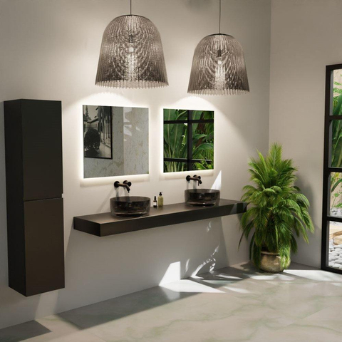 Cette élégante vasque à poser est conçue pour les salles de bains où le design et l’expérience sont tout aussi importants que la fonctionnalité. La forme ronde, noire transparente attire immédiatement le regard et fait de votre meuble de salle de bains un véritable accroche-regard, sans que l’ensemble paraisse chargé ou lourd. Grâce à son format compact de 40 x 15 x 40 cm, ce modèle s’adapte parfaitement sur un meuble de salle de bains simple dans une petite salle de bains ou sur une composition plus spacieuse avec deux vasques côte à côte dans une luxueuse salle de bains familiale ou d’hôtel. La résine transparente offre un aspect moderne, presque comme du verre, mais avec davantage de facilité d’utilisation et de chaleur. Grâce à ses propriétés antibactériennes, c’est en outre un choix judicieux si vous accordez de l’importance à l’hygiène et à une salle de bains fraîche et soignée. Associez-la à un élégant mitigeur surélevé et à des accessoires assortis pour un ensemble raffiné qui restera beau pendant de nombreuses années.Déclaration de design pour salles de bains modernes