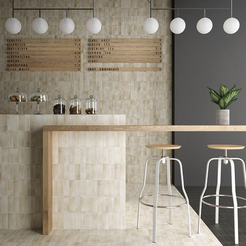 La douce couleur crème forme une base calme et neutre que vous combinez facilement avec des sanitaires blancs, des tons bois et des accents noirs ou en laiton. Vous créez ainsi aisément un look hôtel chic ou au contraire une atmosphère spa sereine dans votre salle de bains. Comme la couleur n’est pas criarde, l’espace reste visuellement calme, même si vous optez pour un motif de pose marquant ou pour la continuité du carrelage à la fois sur les murs et le sol. Cela rend ce carreau particulièrement adapté aux petites salles de bains et aux toilettes : vous obtenez une apparence luxueuse sans que l’espace paraisse chargé, et vous gardez toute liberté de varier avec les accessoires.Formats ludiques et motifs de pose selon votre style