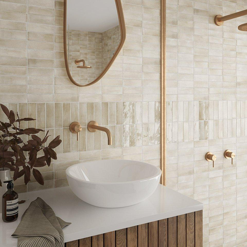 Ce carreau mural élégant est un excellent choix si vous recherchez une base calme et chic pour votre salle de bains ou vos toilettes, sans pour autant devenir ennuyeuse. Le format allongé et étroit se prête parfaitement à des motifs de pose ludiques, comme le chevron ou la pose à mi-brique, et la douce teinte crème s’harmonise aisément avec des intérieurs à la fois modernes et intemporels. Grâce à la surface brillante, le carreau capte la lumière de manière subtile, ce qui fait paraître même les salles de bains compactes visuellement plus spacieuses et plus fraîches. Idéal donc pour ceux qui souhaitent créer une ambiance claire et sereine, tout en appréciant une finition murale raffinée et luxueuse, par exemple derrière le meuble de salle de bains, dans la douche ou comme mur d’accent élégant dans les toilettes.