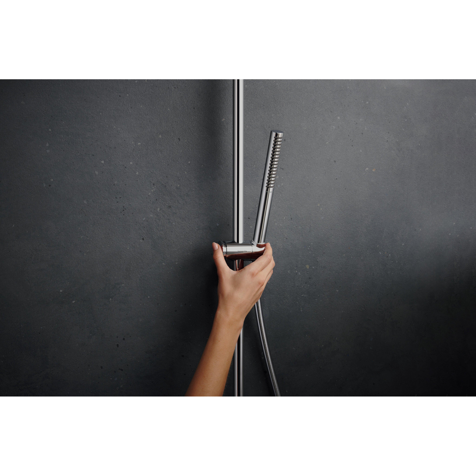 Avec le robinet thermostatique intégré, vous profitez toujours d’une température d’eau sûre et constante, rendant la douche confortable et sans souci. Les poignées ergonomiques sont faciles à utiliser, même avec les mains mouillées. Le support de douche réglable en continu avec fonction PushSlider vous permet de placer la douchette à main à la hauteur désirée sans effort. De plus, un kit de fixation spécial empêche que le tuyau de douche ne s’emmêle, offrant un confort d’utilisation supplémentaire. Grâce à l’installation en saillie, le système est également facile à monter sans casser le mur. Ainsi, cet ensemble combine facilité d’utilisation et technologie intelligente pour une expérience de douche optimale.