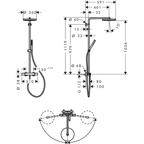 Hansgrohe Pulsify S Puro Ensemble de douche de tête thermostatique - 26cm - douche de tête ronde - douchette à main - chrome